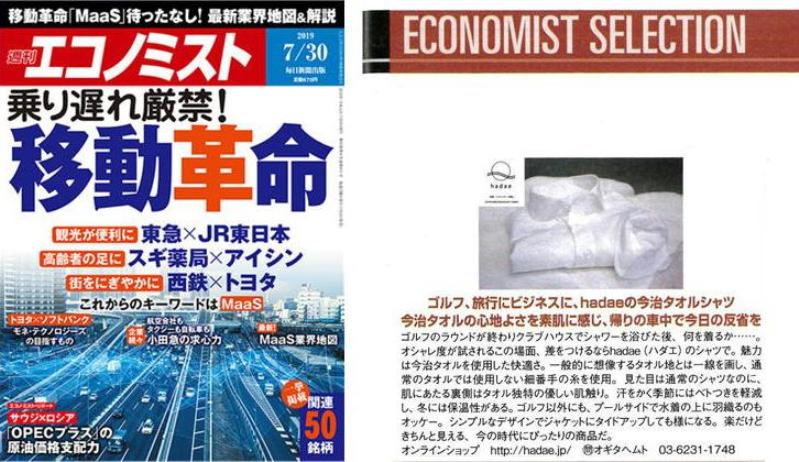 - <三豊肌衣ドレスシャツ>が【週刊エコノミスト2019年7月30日号】に掲載されました。