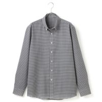 【尾州ウール】 メンズ カジュアルシャツ 長袖 ボタンダウン ギンガムチェック ネイビー系